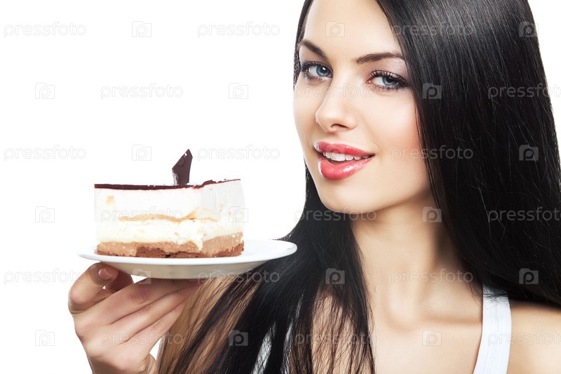 Девушка ест торт