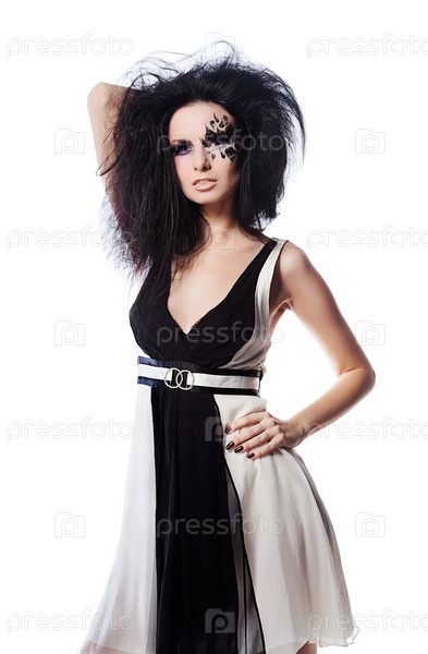 Женщина с фейс-артом на белом фоне