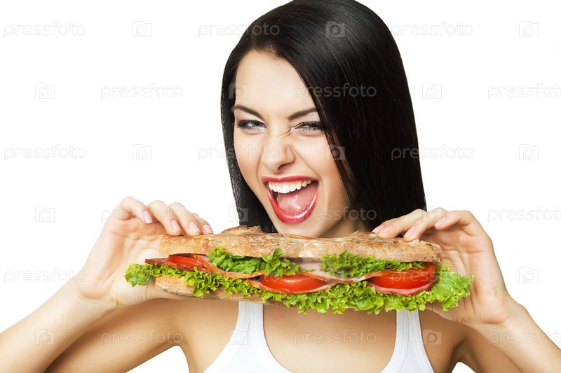 Девушка с большим сендвичем
