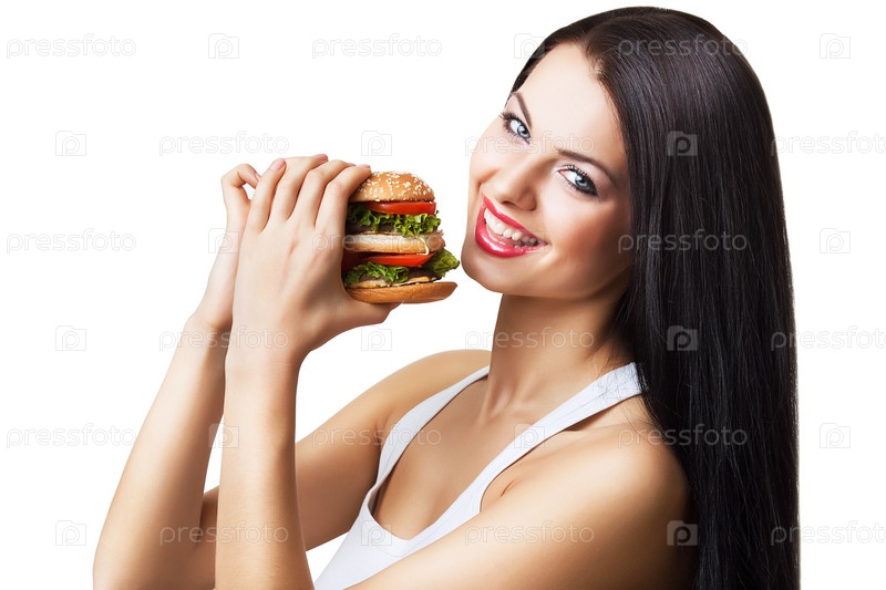 Девушка кусает гамбургер