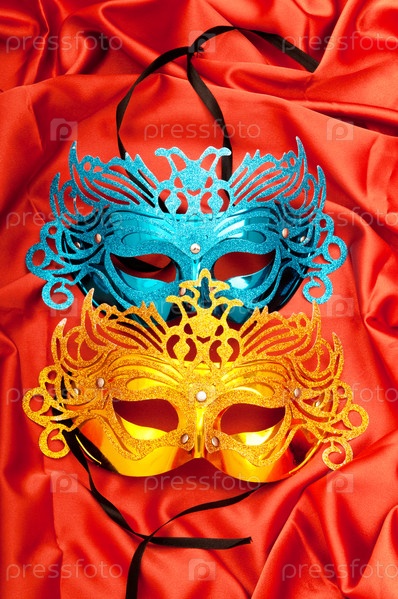 Маски на красной ткани