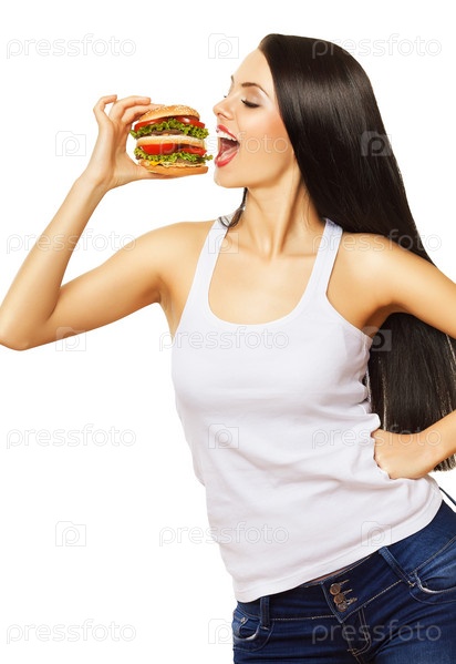 Девушка ест гамбургер