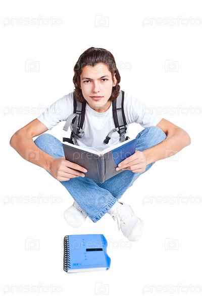 Студент с учебником и ранцем