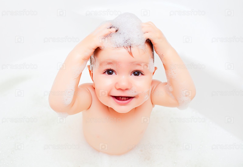 Счастливый ребенок в ванне