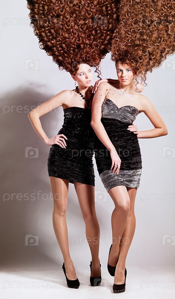 Две девушки с высокими кудрявыми прическами