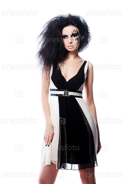 Женщина в черно-белом платье