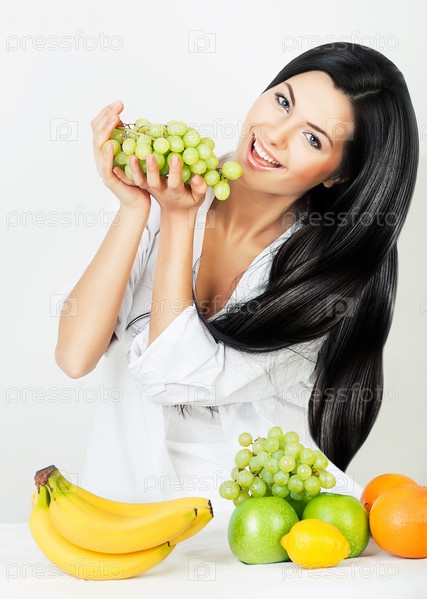Сексуальная женщина с виноградом