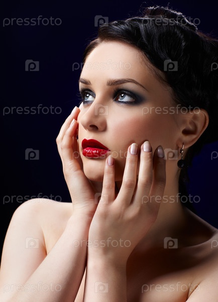 Молодая брюнетка на черном фоне
