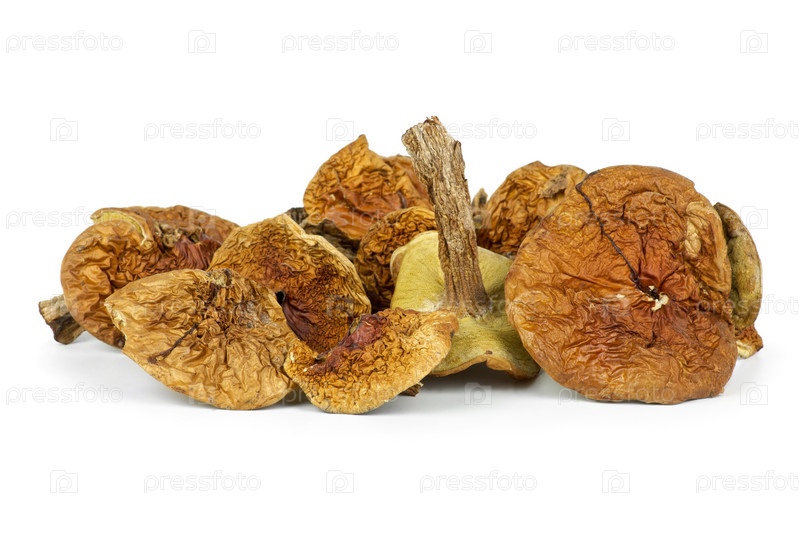 Сушеные белые грибы на белом фоне