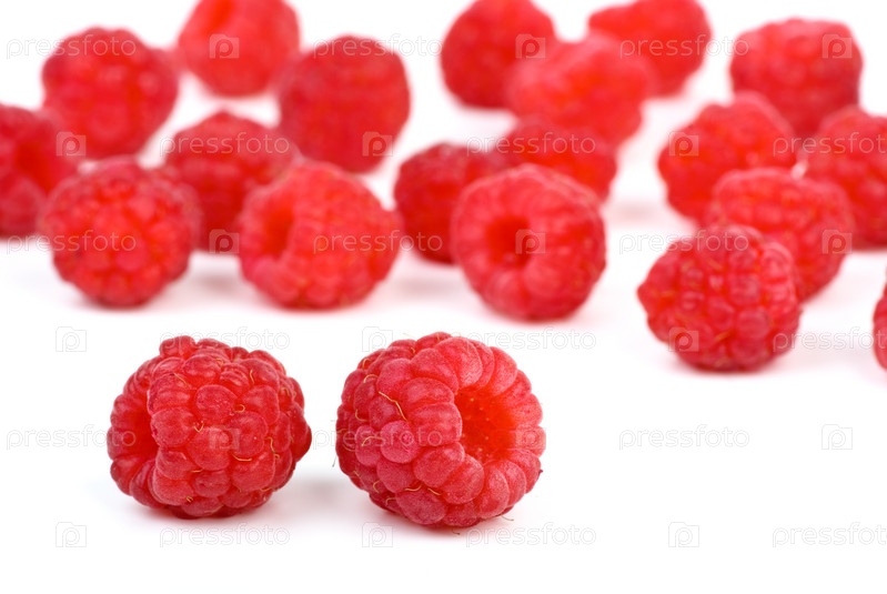 Россыпь малины на белом фоне