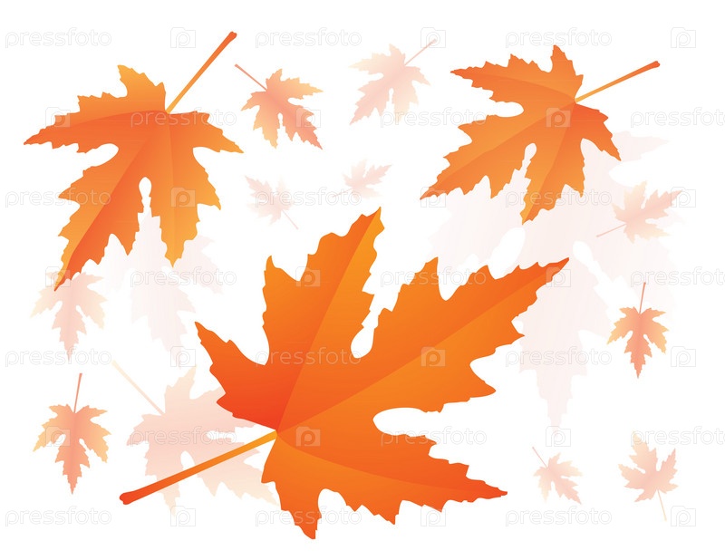 Осенние кленовые листья на белом фоне, иллюстрация