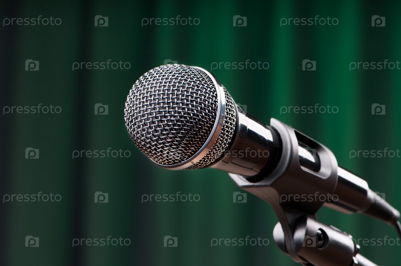 Микрофон на фоне зеленого занавеса