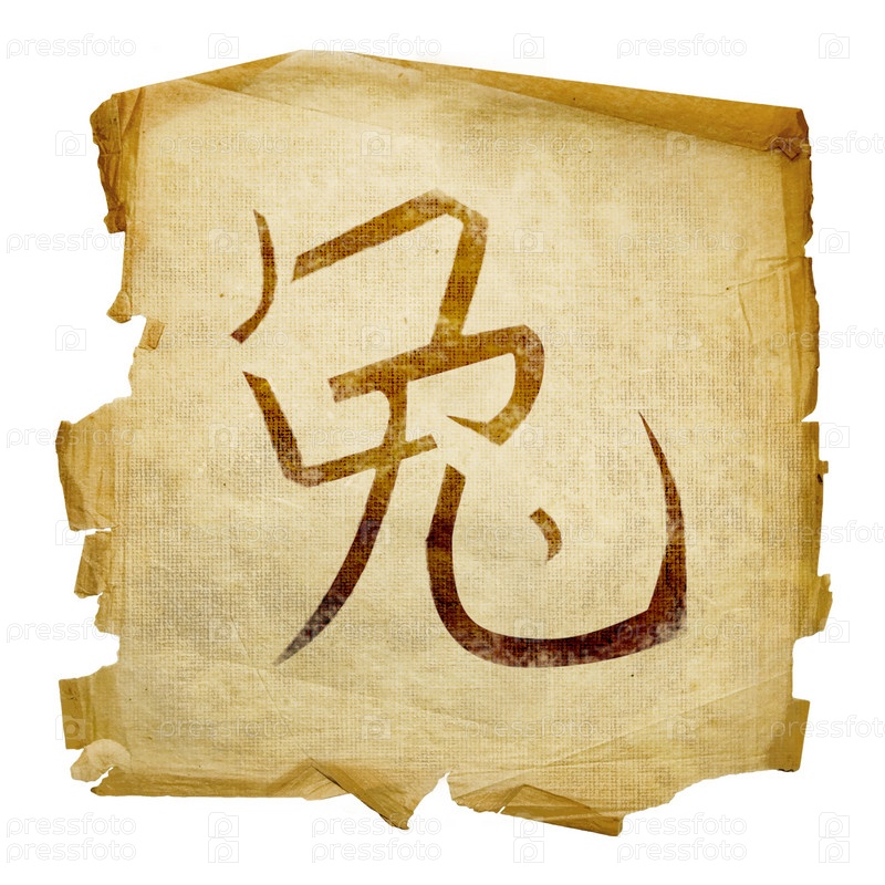 Знак зодиака "кролик" на старом пергаменте, изолированный на белом фоне
