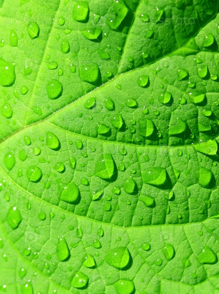 Капли дождя на зеленом листе