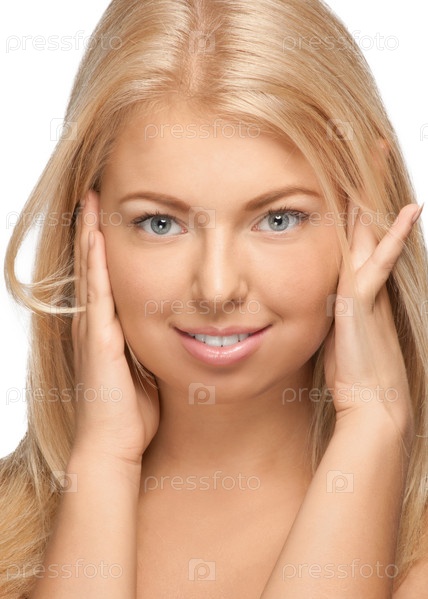 Красивая девушка с идеальной здоровой кожей и естественным макияжем на белом фоне