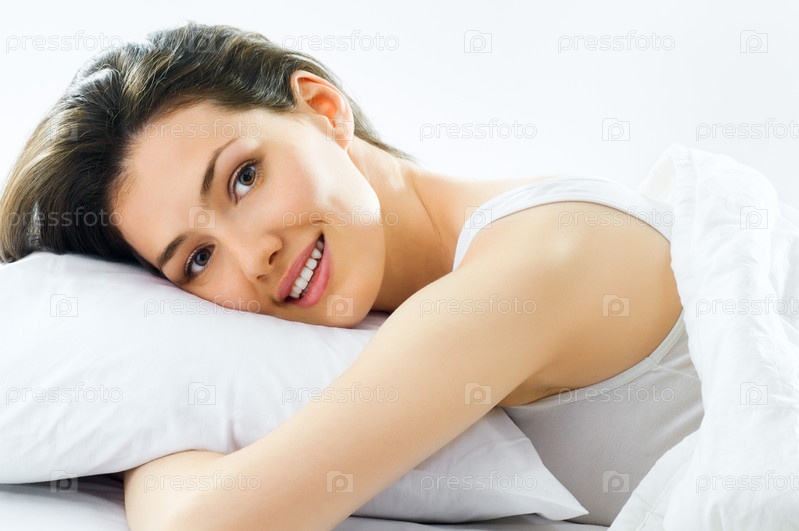 Красивая девушка в спальне после пробуждения