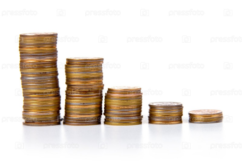 Золотые монеты на белом фоне