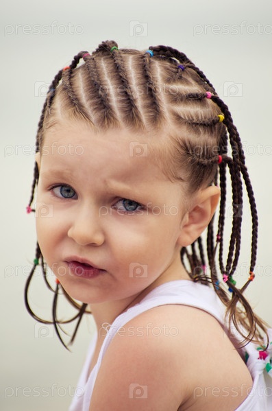 Угрюмая маленькая девочка с косичками