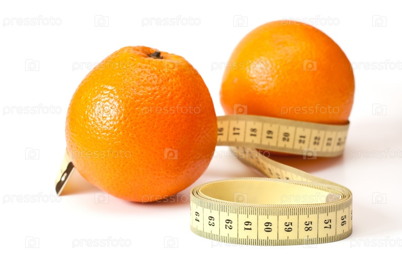 Сантиметровая лента и апельсины