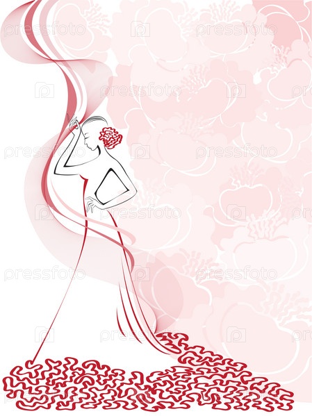 Силуэт стройной женщины в розовом цветочном вихре