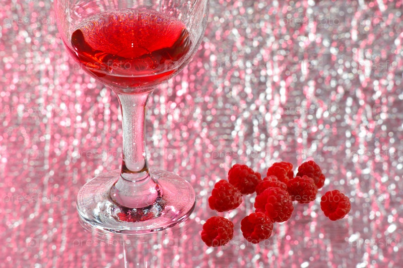 Бокал красного вина и малина