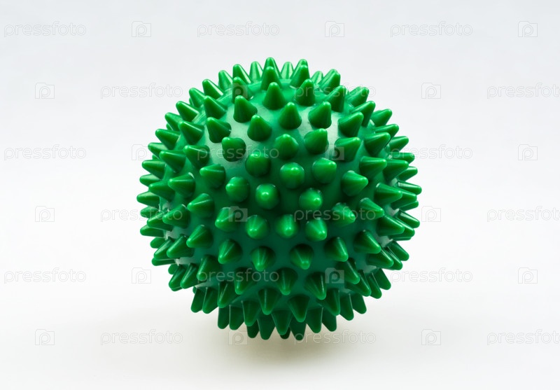 Массажный шар с резиновыми шипами на белом фоне