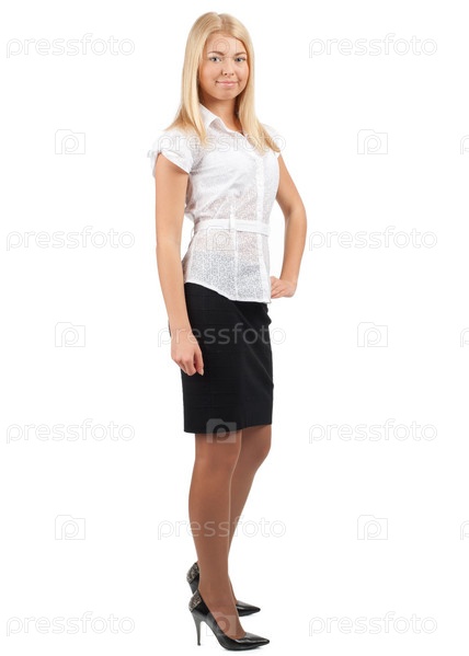 Портрет молодой уверенной деловой женщины на белом фоне