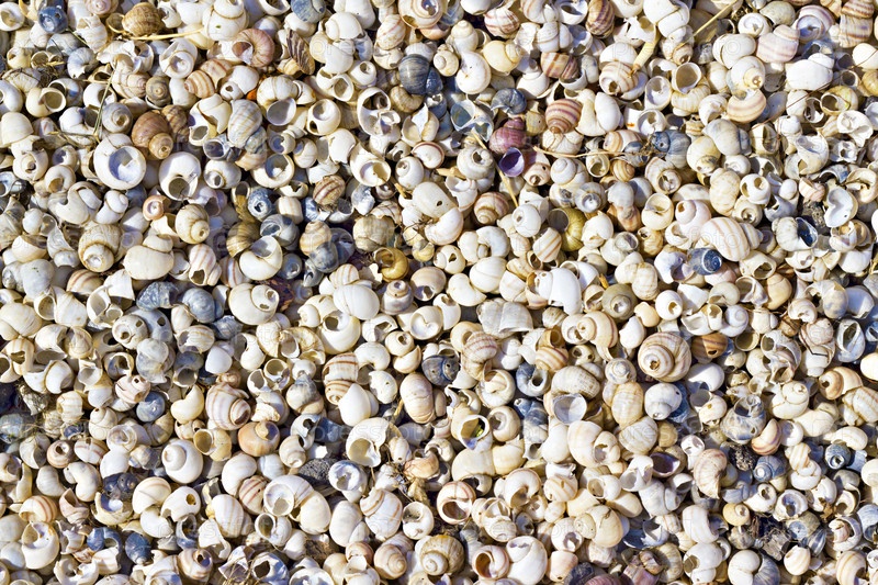 Множество мелких ракушек крупным планом