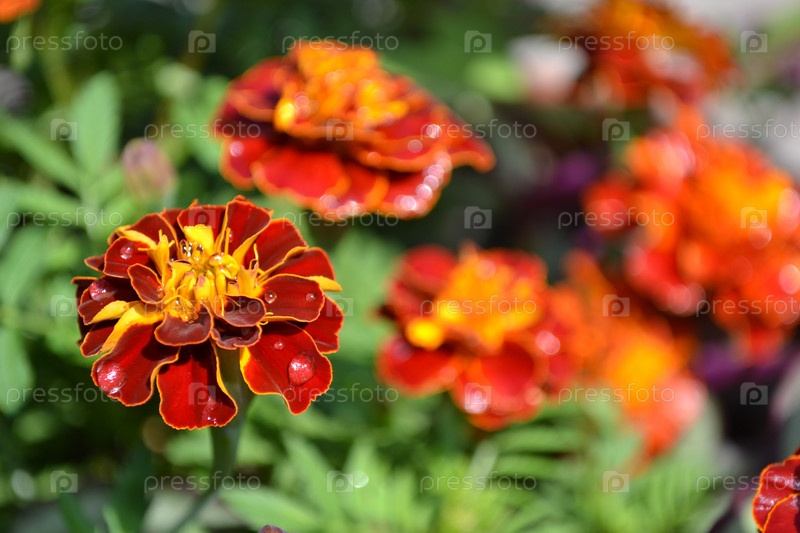 Цветущие бархатцы после дождя