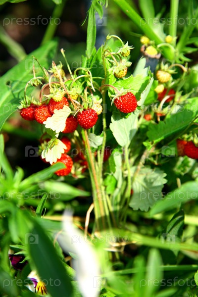 Лесная земляника в траве