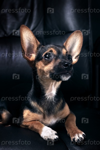 Карликовый пинчер на темном фоне