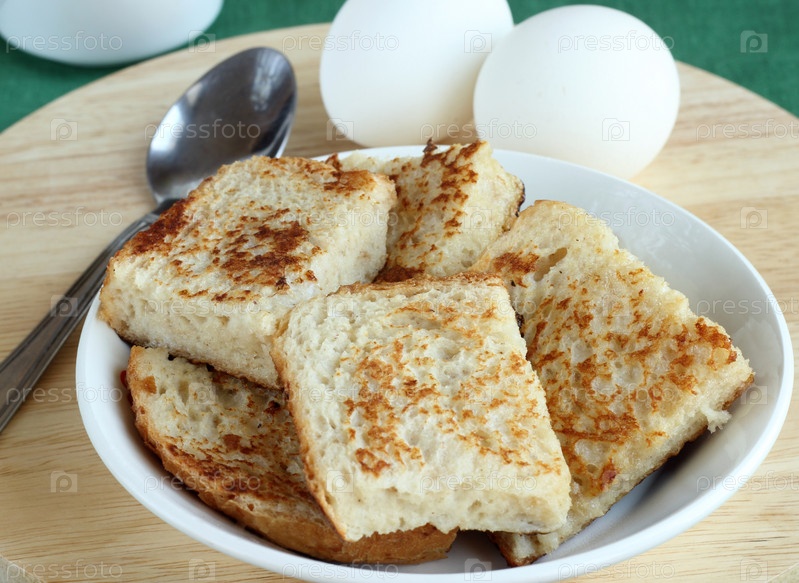 Гренки на тарелке и яйца
