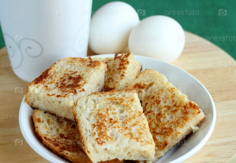 Гренки на тарелке и яйца