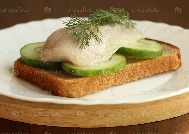 Бутерброд с рыбой, огурцом и веточкой укропа