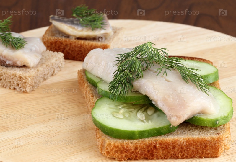 Бутерброд с рыбой, огурцом и веточкой укропа