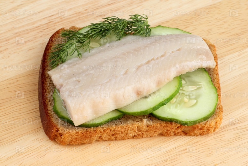 Бутерброд с рыбой, огурцом и веточкой укропа
