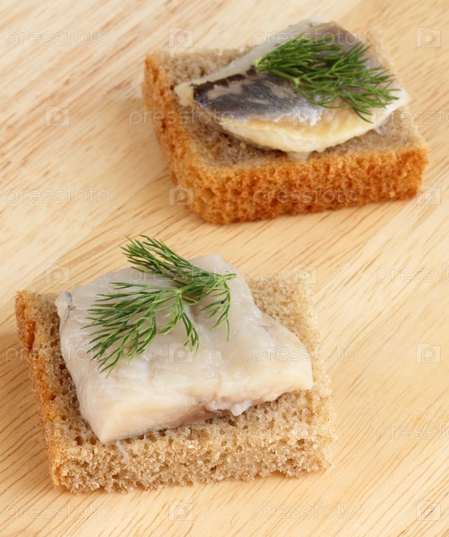 Бутерброды с рыбой и веточкой укропа