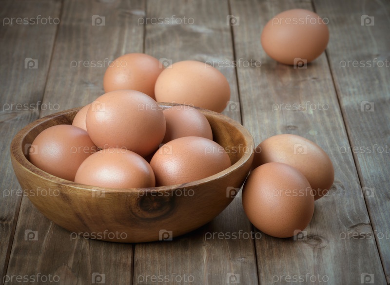 Яйца в деревянной миске