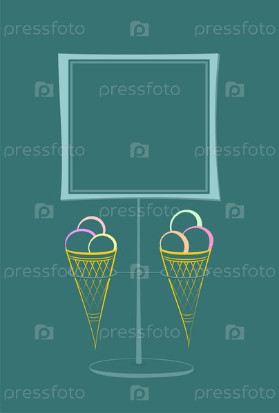 Два рожка мороженого и рекламный щит на сине-зеленом фоне