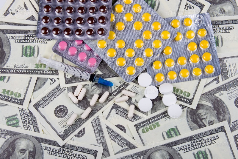 Таблетки и шприц на стодолларовых банкнотах