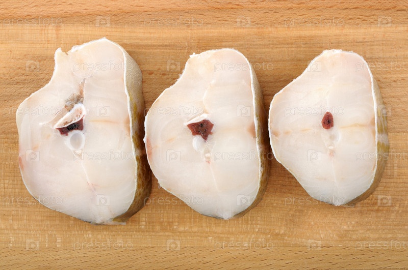 Кусочки трески на деревянной разделочной доске