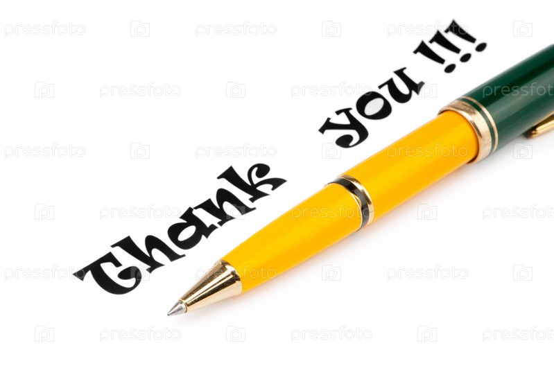 Ручка и надпись "Спасибо" на белом фоне