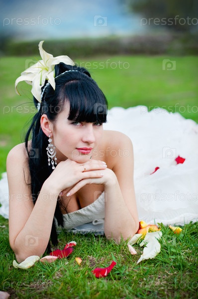 Портрет невесты, лежащей на траве