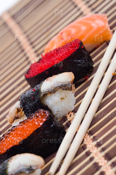 Суши и палочки для еды крупным планом