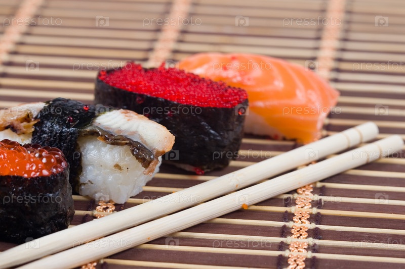 Суши и палочки для еды крупным планом