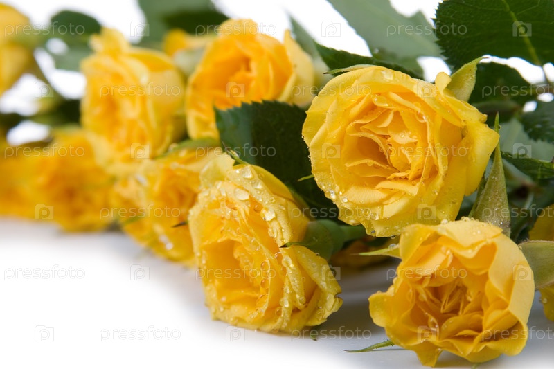 Красивые желтые розы на белом фоне