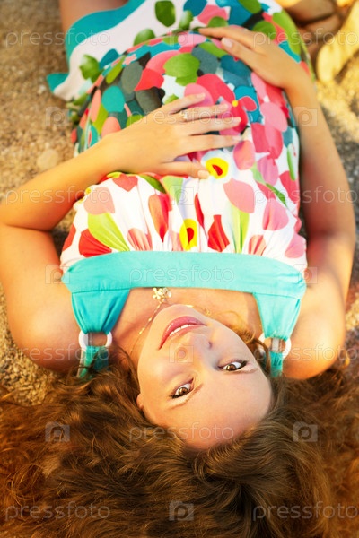 Счастливая беременная женщина на пляже