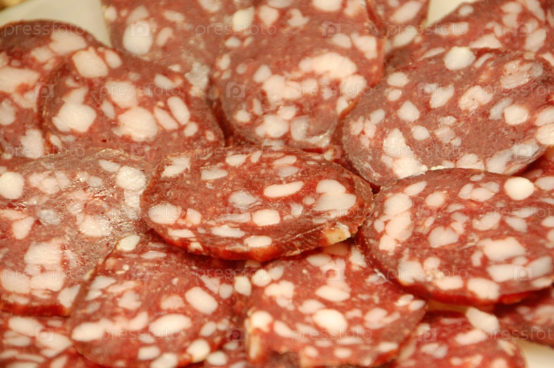 Нарезанная сырокопченая колбаса