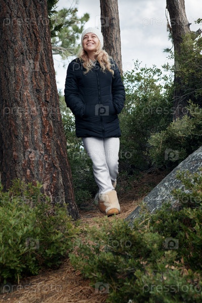 Девушка гуляет в лесу