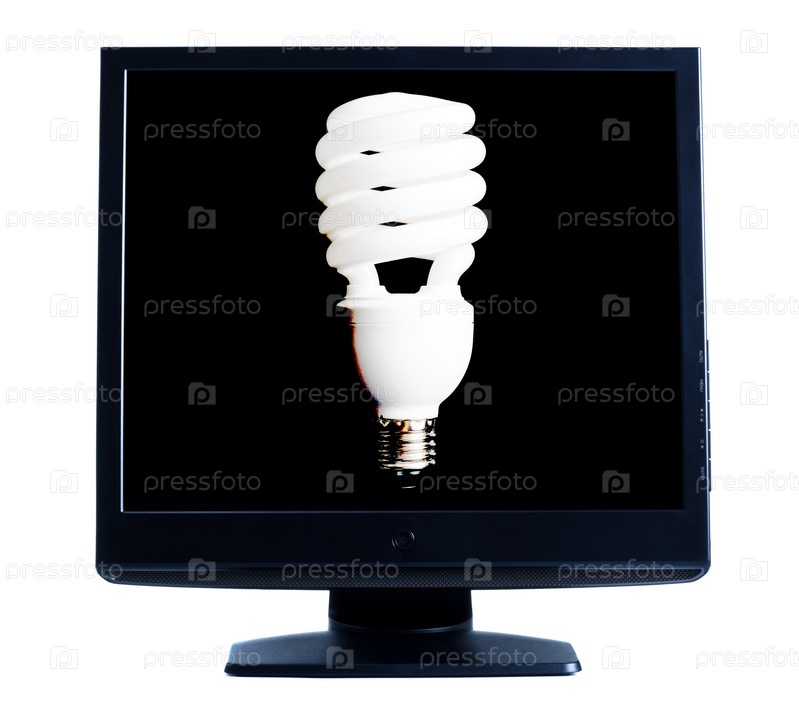 Экран LCD показывает лампочку, изолированную на белом фоне